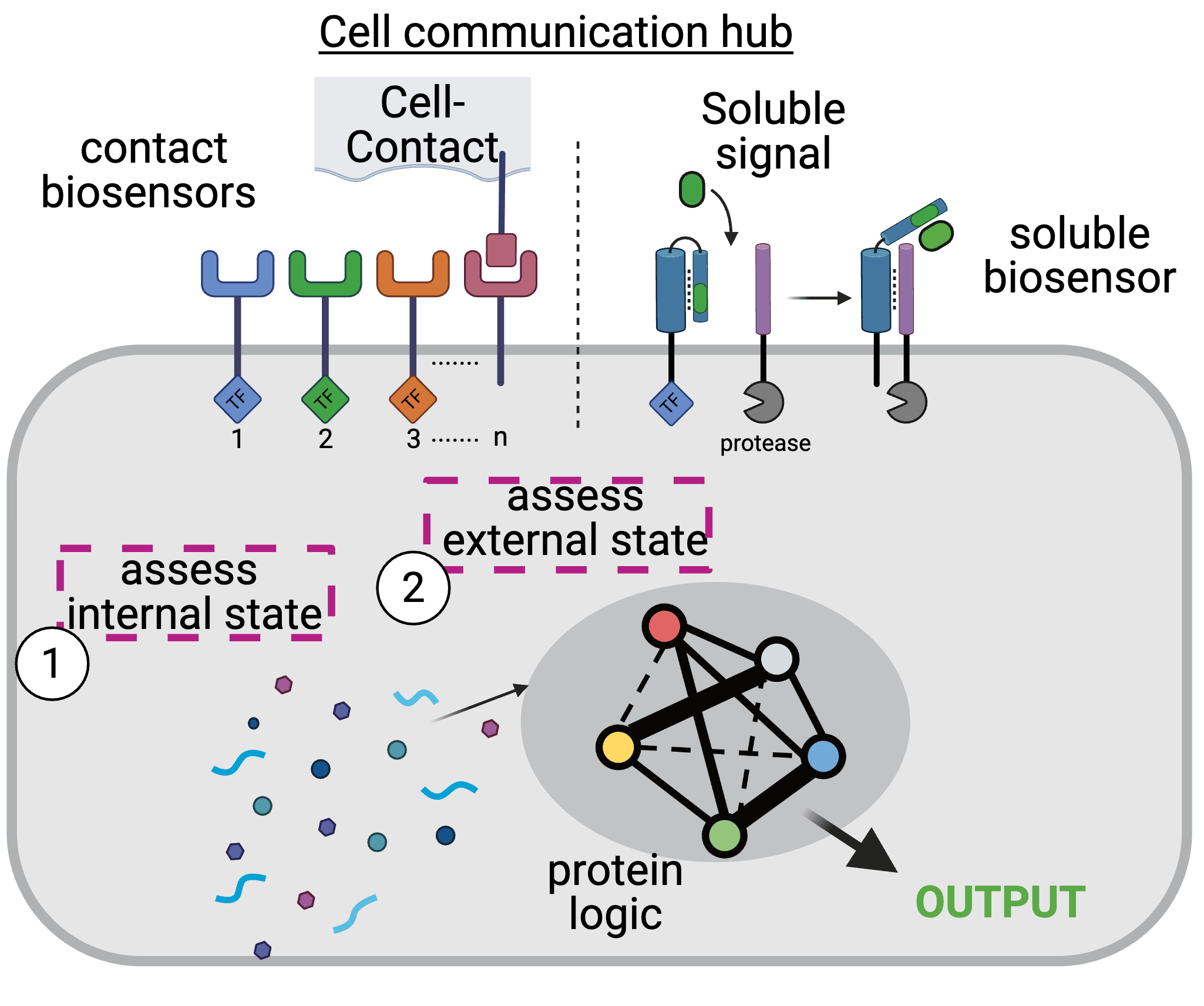 We design smart proteins that activate at the right place and time and assemble them into protein computers that process complex inputs to drive specific cellular outcomes.